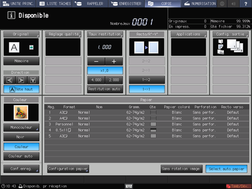 Appuyez sur l'onglet [COPIER] pour afficher l'écran [COPIER].