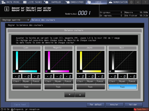 Le réglage est également disponible sur toute la zone de densité entière de chaque couleur.