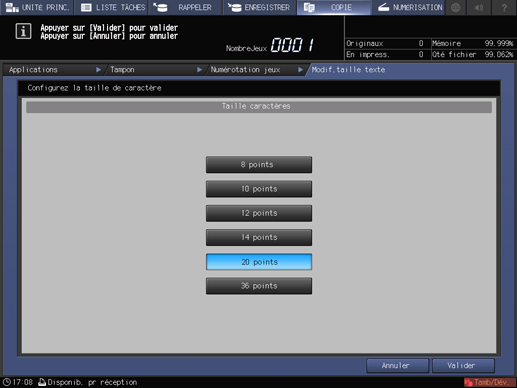 Sélectionnez une des quatre touches sous [Taille caractères].