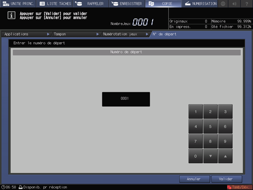 ] pour saisir le numéro de départ dans la plage comprise entre [1] et [99999]. La saisie de [0] règle automatiquement le numéro de départ sur [1].