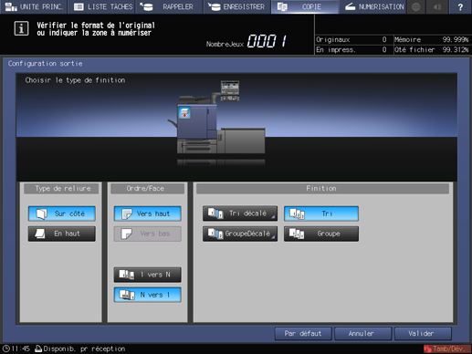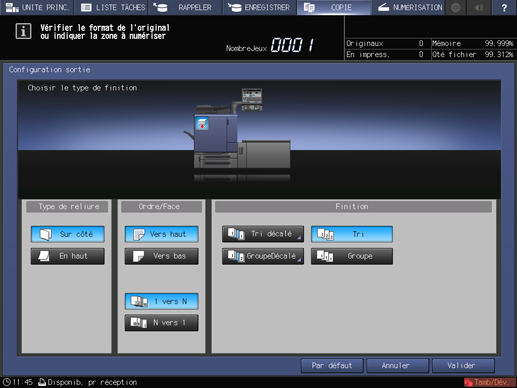 Sélectionnez une des touches [Tri décalé], [Tri], [GroupeDécalé] et [Groupe].