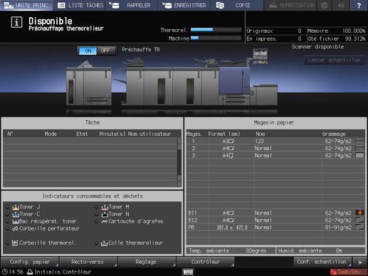L'écran [MACHINE] permet de vérifier l'état actuel du chauffage du thermorelieur. Normalement, [Coupure TR] est affiché à l'écran.