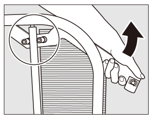 • Tirez la butée papier vers le haut comme illustré, puis tournez-la en direction de la poignée du chariot pour sortir la butée papier du support papier.