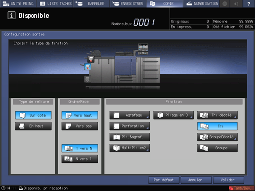 Sélectionnez une des touches [Tri décalé], [Tri], [GroupeDécalé] et [Groupe].