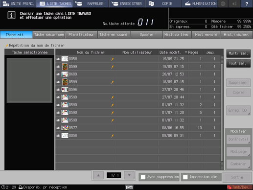 Pour quitter l'écran [LISTE TRAVAUX], appuyez sur un onglet autre que [LISTE TRAVAUX].