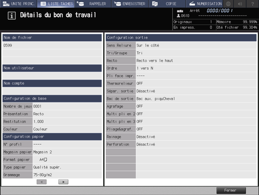 Vous pouvez vérifier les détails des tâches sur l'écran [Détails du bon de travail].