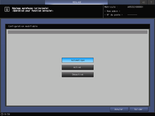 Accueil Paramétrage et réglagesOpération fonction enrouleur : sélection d'opération de la fonction de l'enrouleur