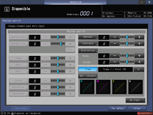 Appuyez successivement sur [Réglage qualité] et [Contrôle densité couleur].