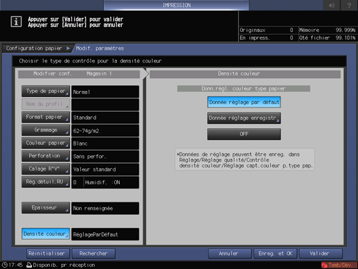 Lorsque Contrôle densité couleur n'est pas appliqué au magasin sélectionné, sélectionnez [Désactivé].