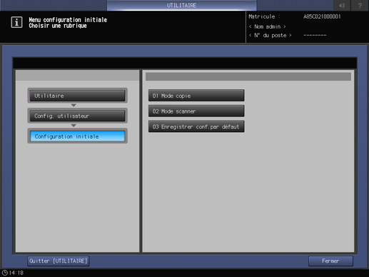 Appuyez sur l'onglet [Configuration initiale] de l'écran [Menu Réglage utilisateur] et appuyez sur [Enregistrer conf.par défaut].
