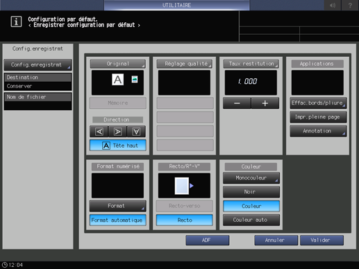 Appuyez sur [Chargeur Auto] pour sélectionner le mode ADF.