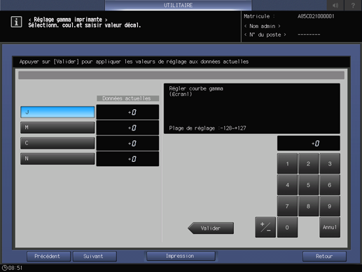 Appuyez sur [Quitter impression] pour retourner sur l'écran [Réglage gamma imprimante].