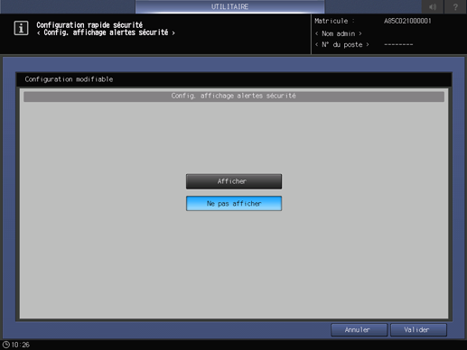 L'écran [Config. affichage alertes sécurité] s'affiche.
