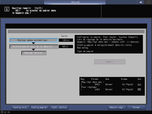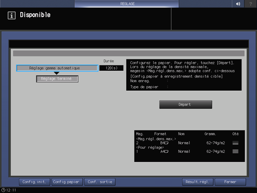 3. Avant d'effectuer des réglages, vous pouvez appuyer sur [Config.init.] pour changer les paramètres de réglage s'il y a lieu.