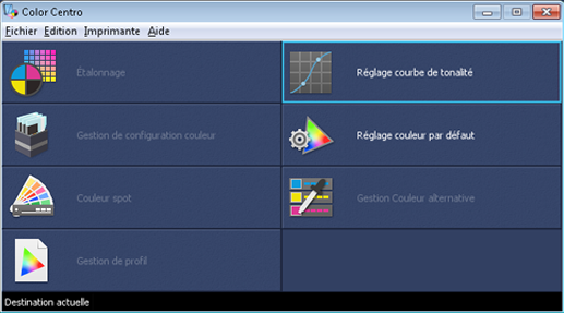 Cliquez sur l'onglet [Gestion de profil] sur l'écran supérieur Color Centro. (Voir Écran Color Centro.)