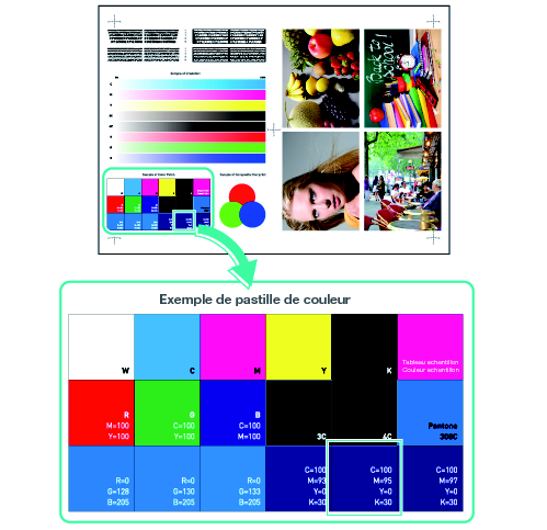 Cette section présente les modalités d'enregistrement de la couleur alternative suivante de la couleur CMJN originale et l'impression avec la couleur de remplacement.