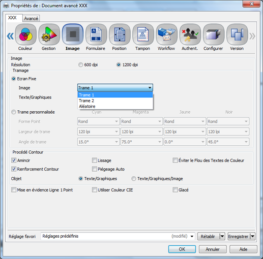 L'utilisateur peut changer la trame dans le pilote d'imprimante à l'impression.
