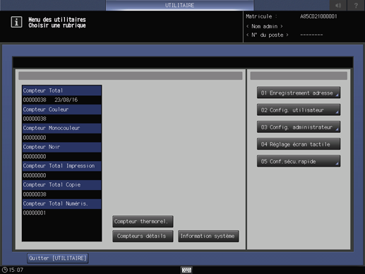 1. Appuyez sur Utilitaire/Compteur sur le panneau de contrôle de la machine.