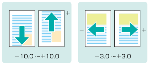 Vous pouvez corriger le défaut d'alignement du recto et du verso de l'impression. Cette section présente les deux manières de corriger l'alignement : décaler l'image pour déplacer toute la zone d'impression et modifier l'agrandissement horizontal et/ou vertical. Les deux méthodes utilisent la définition de valeurs pour affiner les réglages.