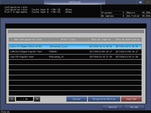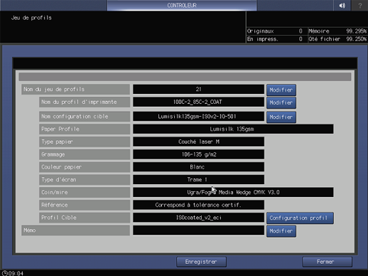 Sélectionnez un jeu de profils et appuyez sur [Enregistrer/Edition].