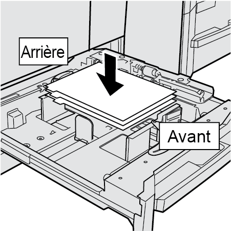 Assurez-vous que les plaques-guide latérales et la plaque-guide arrière sont soigneusement alignées sur le papier. Sinon, la machine ne peut pas détecter le format de papier correct, et un incident machine peut en résulter.