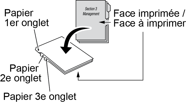 Placez le papier à onglet dans le bac principal comme sur l'illustration affichée ci-dessus.