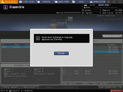 La boîte de dialogue s'affiche et le bac principal s'abaisse (environ 5 cm).