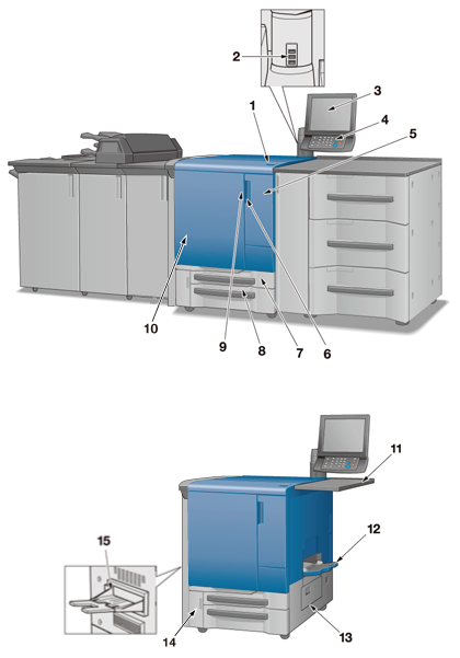 14 | Porte pour remplacement de boîte de récupération toner | S'ouvre pour remplacer la réservoir de toner usagé. |