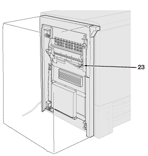 23 | Levier de déverrouillage | Pression vers l'arrière pour ouvrir en bas et éliminer un bourrage papier. Le Levier de déverrouillage est accessible par l'équipement en option de gauche. |