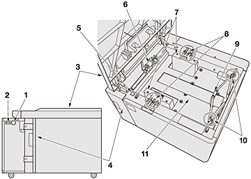 S'ouvre pour l'approvisionnement papier ou l'élimination de bourrage papier.