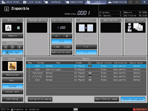 Pour en savoir plus sur l'écran [COPIER], voir Présentation de l'écran COPIER.