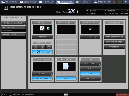 L'écran [ENREGISTRER] s'affiche pour enregistrer une tâche numérisée.