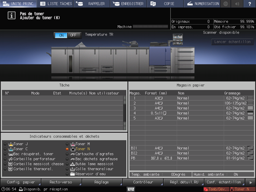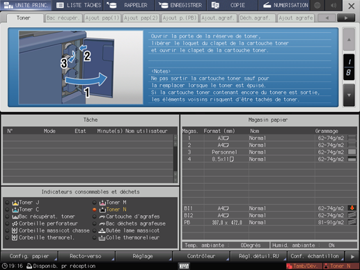 Appuyez sur l'onglet [Toner] dans la zone de message d'aide de l'écran [MACHINE].