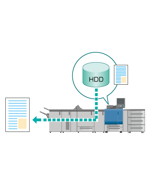 Vous pouvez enregistrer sur le disque dur les tâches numérisées sur la machine et les travaux d'impression d'un ordinateur. Vous pouvez imprimer une tâche enregistrée en modifiant le bon de travail ou l'envoyer à un ordinateur du réseau.