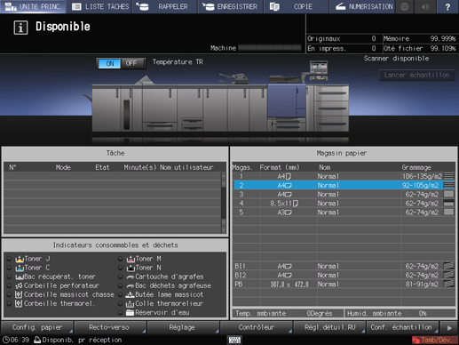 Appuyez sur l'onglet [LISTE TRAVAUX] sur l'écran tactile de la machine.