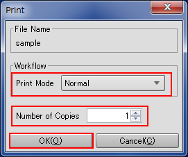 Sélectionnez [Mode d'impression], entrez [Nombre de Copies], puis cliquez sur [OK].
