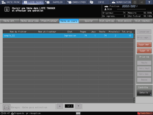 Appuyez sur l'onglet [LISTE TRAVAUX] sur l'écran tactile de la machine.