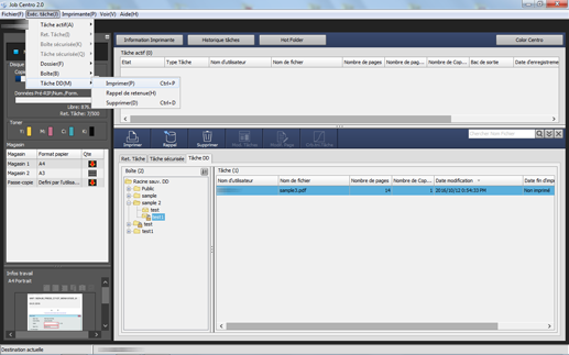 Vous pouvez imprimer une tâche enregistrée sur disque dur à l'aide de Job Centro.