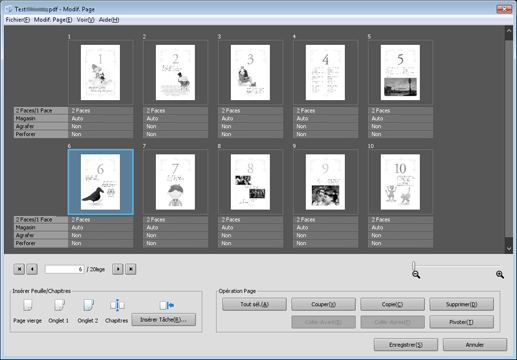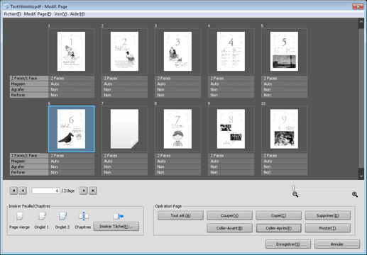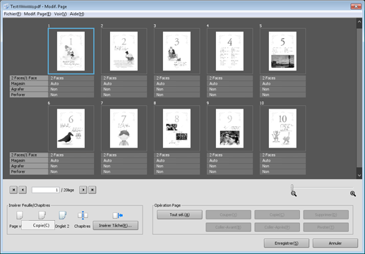 Apportez des modifications aux pages (par ex. copie, déplacement, suppression / configuration de chapitres / insertion de papier à onglet).