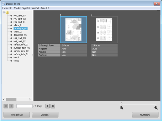 Sélectionnez la ou les vignettes de la page ou des pages à insérer et cliquez sur [Copie].