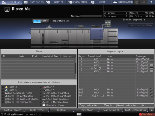 Sur l'écran tactile de l'imprimante, appuyez sur [LISTE TRAVAUX].