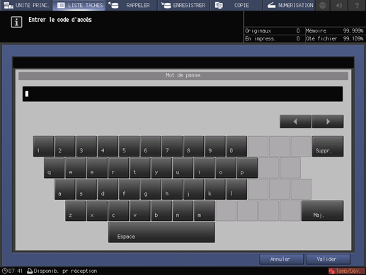 L'écran [Tâche sécurisée] s'affiche.