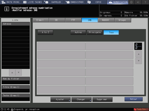 Après avoir appuyé sur [NUMERISER], appuyez sur [SMB] pour afficher cet écran.