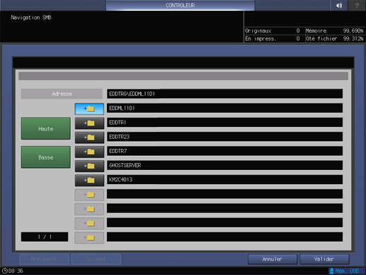 Enregistrez le serveur SMB de destination sur la machine à l'aide de l'écran tactile de l'imprimante.