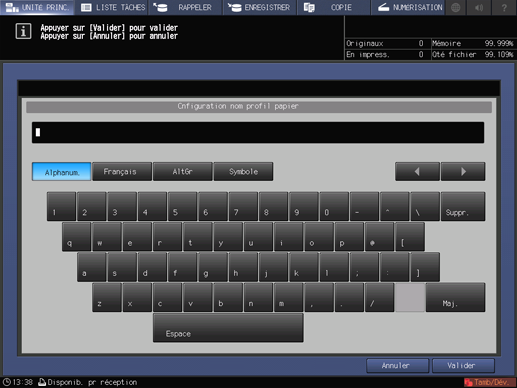 Entrez le nom de profil papier et appuyez sur [Valider].
