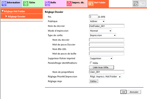Cliquez sur l'onglet [Hot Folder].