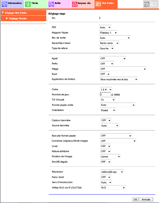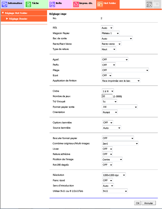 Dans [Réglage priorité impression], sélectionnez [Réglage impression de Hot Folder].
