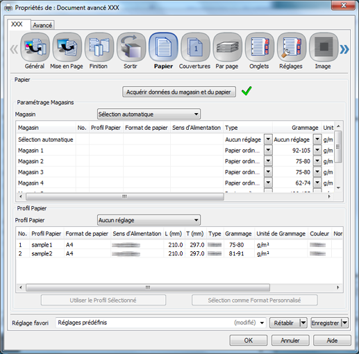 Cliquez sur l'onglet [Papier], puis sur [Acquérir données du magasin et du papier].