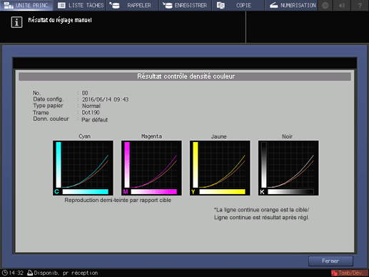 Appuyez sur l'onglet Résultat densité couleur de l'écran UNITÉ PRINC.