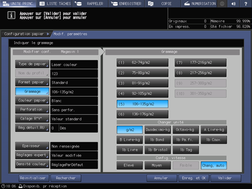Exemple : dans cet exemple, sélectionnez (5) 106-135g/m2.